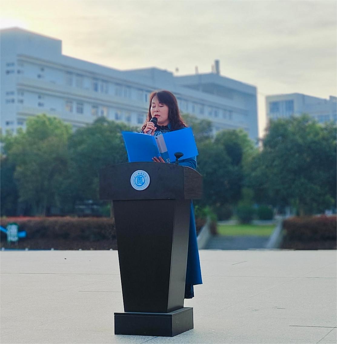 陶艳妮书记讲话。她勉励同学们要坚定理想信念,在变化的时代中从容自信,争做民族脊梁;要博学于文,约之于礼,在洪流裹挟中永葆初心;要勤练技能,以学业为先,在大美年华里提升本领。