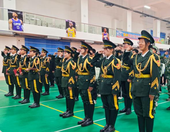 国旗是国家的象征,是民族精神的体现,守卫国旗是每一位公民应尽的责任。国旗护卫队的成立,不仅是新队员们荣耀征程的起点,更是学校爱国主义教育的生动实践。爱护国旗,保护国旗,维护国家尊严与荣耀。国旗护卫队的队员们将以护卫国旗为使命,用青春和热血书写对祖国的忠诚,让国旗在校园中永远飘扬,让爱国精神在每一位天职学子心中深深扎根。