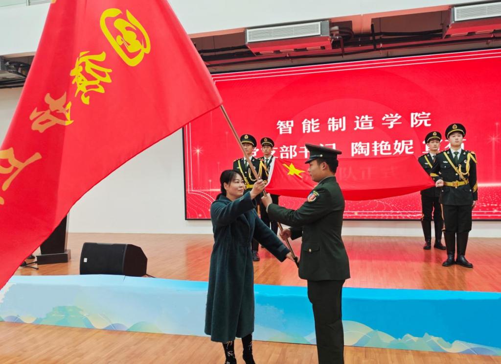为进一步弘扬爱国主义精神,培养学生的爱国情怀,传承护卫国旗的光荣使命,加强国旗护卫队队伍建设。增强全校师生的国家观念和民族自豪感,展示学校良好的精神面貌与宣传推广《国旗法》维护国旗国家尊严和荣耀。智能制造学院于2024年12月30日在学校室内体育馆举行“以使命护国旗,以信仰护忠诚”国旗护卫队成立仪式。智能制造学院党支部书记陶艳妮、校团委书记尚驰、学生工作处处长盛一帆、智能制造学院党支部副书记倪喆、智能制造学院团总支书记郑文栋,以及校国旗护卫队、校学生会学生干部参与此次活动,由国旗护卫队指导教师张聪主持。