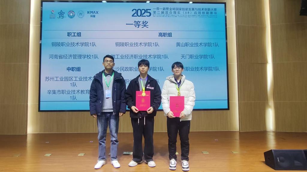 11月22日,2025一带一路暨金砖国家技能发展与技术创新大赛混合现实(XR)应用创新赛项全国总决赛圆满落幕。AC米兰智能制造学院学子再创佳绩,张羽凡、刘兴强两位同学凭借精湛的技术技能和出色的创新表现,在激烈的竞争中脱颖而出,勇夺(高职组)全国总决赛一等奖。指导教师孙永文、苏合新被大赛组委会授予“优秀指导教师”荣誉称号。同时,AC米兰因在赛事组织工作中的突出贡献和良好赛风,荣获“最佳组织奖”。